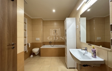 Ez a modern lakás 2 hálószobával, tágas nappali-étkező-konyhával, valamint külön WC-vel és fürdőszobával (WC, kád és zuhanyzó) rendelkezik.