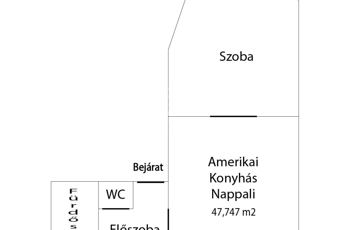 A lakás a második emeleten helyezkedik el, amerikai konyhás nappaliból, hálószobából, előszobából, fürdőszobából és még egy különálló WC-ből áll.