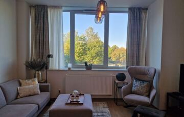 A lakás elektromos kandallóval, modern világítótestekkel, szőnyegekkel és függönyökkel igényesen berendezett – csak a személyes tárgyakat kell hozni.