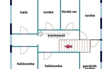Az emeleten, ami br. 110 m2, 5 hálószoba, gardrób szoba és egy fürdő lett kialakítva.