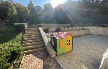 A ház kertre néző kilátással bír, így garantált a nyugodt és zöld környezet.