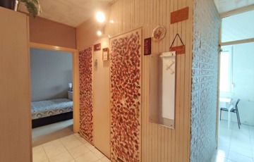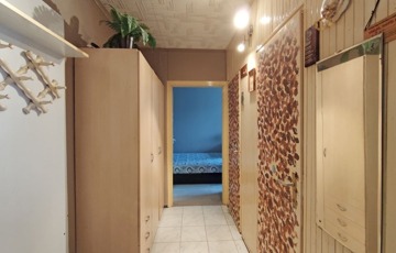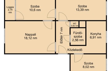 A lakásba belépve a több ponton záródó biztonsági bejárati ajtón keresztül a két irányban járható 7 nm-es járólapos előszobába érkezünk, ahonnan az összes szoba és helyiség nyílik. Az előszobából egyből jobbra is és balra is egy-egy szoba nyílik. A bejárati ajtóból balra fordulva a minőségi laminált parketta burkolatú, több mint 18 nm-es, Polar márkájú klimatizált nappaliba lépünk, melyből egy gyerekszobának vagy hálószobának is alkalmas 10,6 nm-es ugyanolyan parkettás szoba nyílik, végében a hangulatos, parkra néző loggiával. Ez a szoba a másik, vele szemben álló 13,4 nm-es, szintén laminált parketta burkolatú hálószobával is egybenyílik, illetve a közlekedőből is ajtókapcsolatos. Innen a bejárat felé visszamenve a közlekedő jobb oldalán a járólapos és csempézett WC és a szintén járólapos és csempézett 2,6 nm-es fürdőszoba következik. A bejárati ajtó mellett a konyha előtt a közlekedőben jobbra fordulva a negyedik, 8 nm-es járólap burkolatú szobát találjuk. A közlekedő végében pedig az étkezős, igényes, fekete és fehér színnel kombinált beépített konyhabútoros, 4 lángos gáztűzhelyes, ablakos, világos, járólapos, 7 nm-es konyhába kerülünk.