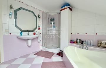 A ház 2005-ben épült, masszív 38-as téglafalazattal, korszerű szigeteléssel és kondenzációs kazánnal, padlófűtéssel és klímaberendezésekkel kiegészítve. A belső terek világosak, tágasak, a hangulat pedig otthonos és kiegyensúlyozott.