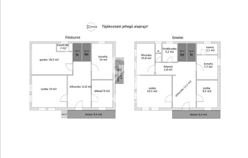 - Az emeleten található: 2 szoba, 2 félszoba, 1 konyha, 1 kamra, 1 WC, 1 fürdőszoba