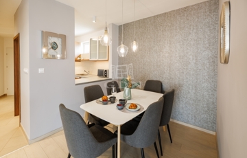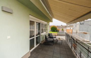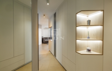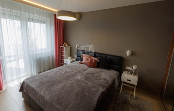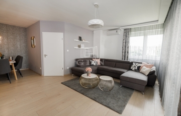 A tágas, napfényes nappali a lakás központi tere, közvetlen teraszkapcsolattal. A hálószobából és a fürdőszobából is kiléphetsz a teraszra, így a friss levegő és a nyugalom mindig karnyújtásnyira van.