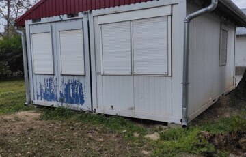 Az iroda épülete kiváló állapotban van: 20 éve épült , cserepeslemez tetővel, könnyűszerkezetes, 37 m2 alapterületű, műanyag nyílászárók reluxával , szürkéskék járólappal ellátva.