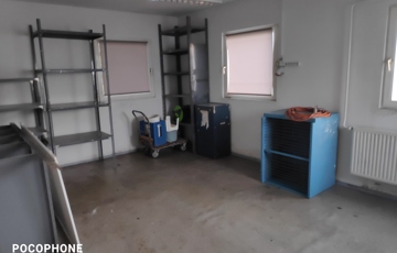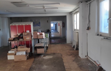 Az üzemcsarnok helyiségei: egy kisebb műhely, három darab nagyobb méretű terem, közlekedő, szociális helység (zuhanyzó, wc, mosdó), egy öltözőhelység, egy kisebb terem.