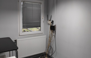 Az iroda két db bejárati ajtóval is rendelkezik, abból a praktikus elgondolásból, hogy a cég ügyfelei külön tudjanak közlekedni és zavartalan környezetben tudjanak a cégvezetővel megbeszéléseket folytatni.