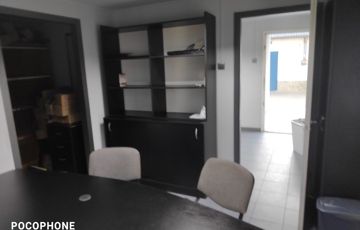 Helyiségei: kis terasz, egy nagyobb közlekedő, 3 db iroda, egy szociális helység (wc, mosdó).