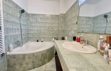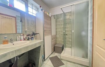 A földszinti fürdő zuhanyzóval, az emeleti káddal felszerelt.