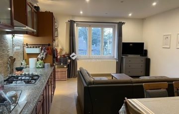 A házrészhez tartozik a földszinten egy teljesen önálló bejáratú, hőszigetelt minigarzon kis szobával és zuhanyzó-wc-val, fekvőgalériával, ami akár kezdőlakásként, akár irodaként, vagy bérbeadás útján is hasznosítható. Rendelkezésre áll egy pinceszinti tároló is.