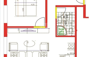 Közvetlen mellette egy szintén tágas, napfényes amerikai-konyha-nappalis, 1 hálószobás összkomfortos 39 m2-es dupla ERKÉLYES lakás is eladó 68,9 M Ft-t.