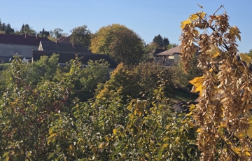 A ház egy 1200 m²-es, lejtős telken fekszik, ahol a kertbe és a garázsba lépcső vezet – ez nem hiba, hanem karakter. A telek ideális kertészkedéshez, pihenéshez vagy akár további fejlesztéshez.