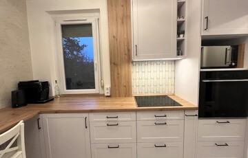 • Egyedi gyártású, festett fa frontos konyhabútor minőségi szerelvényekkel