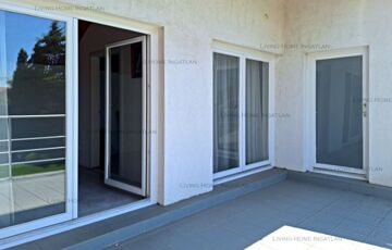 <p>A földszinthez tartozik egy 15 nm-es terasz, melyre a szobából, nappaliból és a konyhából is közvetlenül ki lehet menni. További helyiségek: előszoba, kamra, gardrób, fürdőszoba és vendég wc.</p>