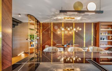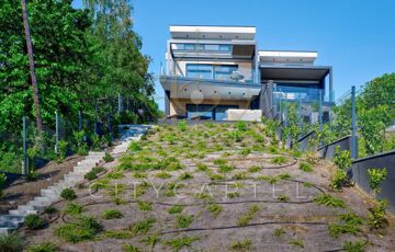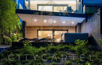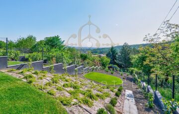 A 734 nm-es, gondosan kialakított lépcsőzetes telken álló ház minden négyzetmétere az igényességet és a minőséget tükrözi — a minőségi faburkolatoktól a mennyezetig érő ajtókig, a kristálycsillároktól a legapróbb, funkcionális részletekig.