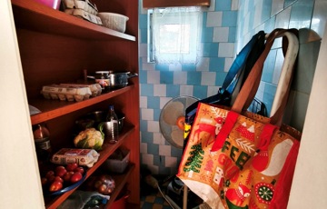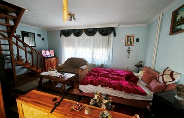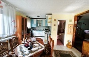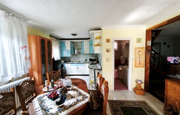 Alsó szinten: nappali, konyha, fürdőszoba, WC, kamra