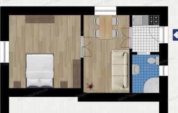 A szobák padlóburkolata laminált padló, a teakonyhában és a fürdőben hidegburkolat található.