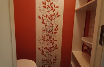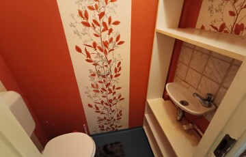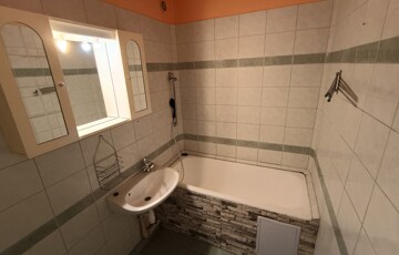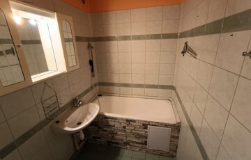 - A fürdőszoba, WC járólappal, a szobák laminált parkettával burkoltak.