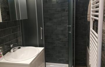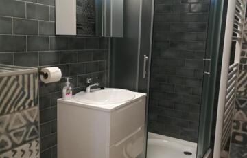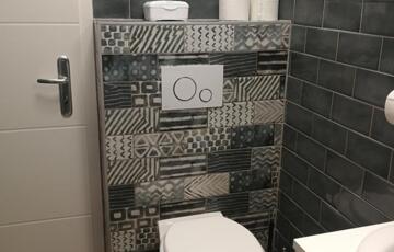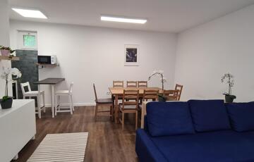 Az alsó szinten található még az előszoba és az egyik fürdőszoba ( zuhanyzós).
