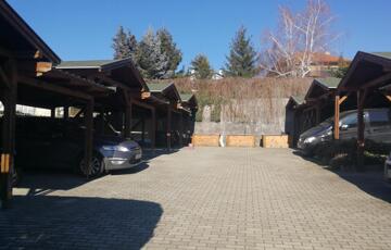 Az ingatlanhoz fedett autóbeálló, közös és különálló zárható tároló is tartozik.