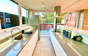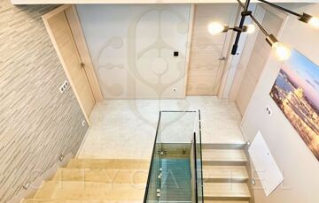 A belső terek visszafogott eleganciát és kifinomult minimalizmust sugároznak. A nappali tágas, természetes fényben úszik, a felső szint pedig egy panorámás teraszkomplexummal koronázza meg az ingatlant – tökéletes helyszín pihenésre vagy reprezentatív eseményekre.
