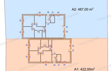 Mellette lévő "A1" jelzésű 89 nm-es, teraszos másik ikerház fél is eladó, ami 487 nm telken fekszik.