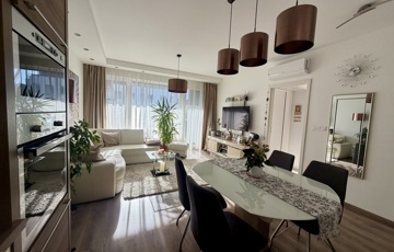 Egy elegáns, kifinomult, mégis barátságos és otthonos lakás, ahol a modern városi élet kényelme és a nyugalom harmóniája találkozik.