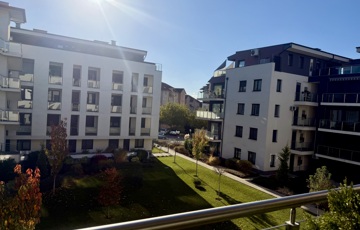 A lakópark zárt, biztonságos. Csendes környezetben fekszik, mégis minden elérhető közelségben van: üzletek, iskola, gyógyszertár. A buszmegálló egy perc, a vasútállomás néhány perc alatt elérhető gyalogosan. Az autóval közlekedők számra akár a városközpont, akár az autópálya néhány perc távolságban van.