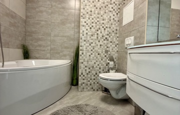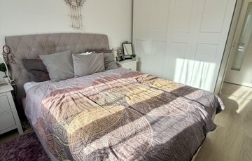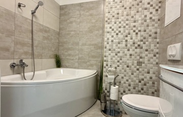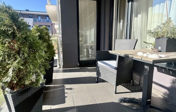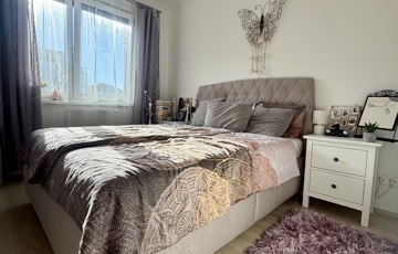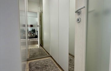 A lakás elrendezése praktikus és harmonikus: amerikai konyhás nappali, hálószoba, tágas kádas fürdőszoba és külön gardróbhelyiség biztosítja a kényelmet.
