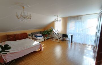 Tetőtér: 4 szoba, társalgó, fürdő (zuhanyzó + hidromasszázs kád + WC), szauna, külön WC, 2 erkély
