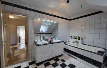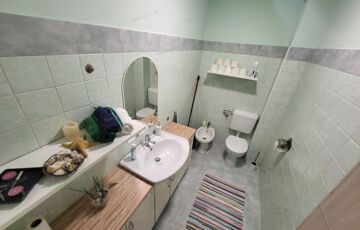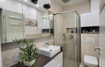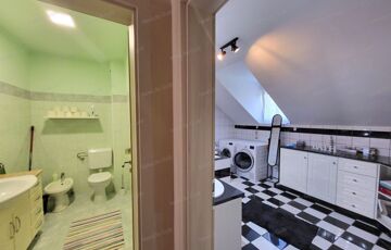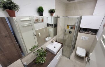- Két fürdőszoba – az alsó zuhanyzós, a felső kádas, dupla mosdóval