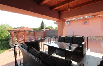 A 1254 m²-es parkosított kert olyan figyelmes tervezés eredménye, amely egyszerre biztosít pihenést és aktív kikapcsolódást. A nagyméretű, parasztfödémes fedett teraszról lélegzetelállító kilátás nyílik a festői Csobánc-hegyre.