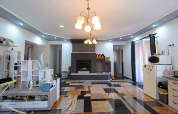 A nappali különleges atmoszféráját nemcsak a tágas tér, hanem az eklektikus hatású gránit- és márványburkolat is meghatározza, amely tökéletes összhangban van a helyiség központi elemével, a nagyméretű kandallóval. A közlekedőkben és a hálószobákban gress márványlapok és laminált padló található, amelyek harmonikus és praktikus burkolatmegoldások.