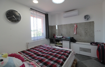 Az ingatlan tervezése során kiemelt figyelmet fordítottak a funkcionalitásra és az esztétikára. A világos, modern térben harmóniában jelenik meg a közösségi időtöltésre alkalmas nagy nappali és az elvonulásra alkalmas magánszféra.