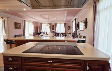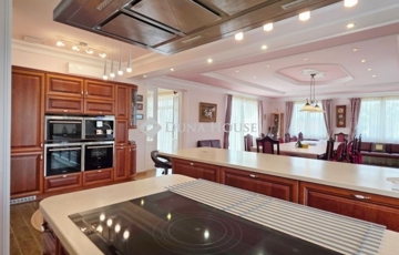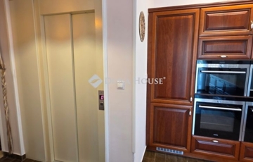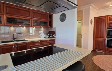 A konyha magasan felszerelt, a sütőn kívül pároló, mikró, kávégép, melegentartó, mosogatógép, dupla méretű főzőlap, elszívó is beépítésre került.