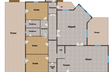 Jelenlegi kialakításában nappali+3 szoba, 3 fürdőszoba kapott helyet, de nagyobb családok számára akár további 2 szoba is könnyedén leválasztható a nagyobb terekből.