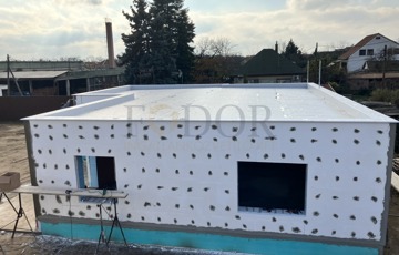 Az épület Porotherm (30-as) falazattal, 10 cm-es dryvit szigeteléssel, 3 rétegű hőszigetelt műanyag nyílászárókkal, valamint Hajdú hőszivattyús fűtésrendszerrel készül, amely padlófűtéses hőleadással működik. Lapostető kialakítású, Austrotherm lépésálló szigeteléssel, de sátortetős kivitel is elérhető értékegyeztetéssel.