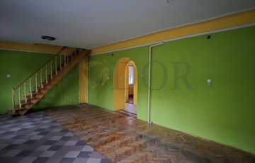 • Földszint: előszoba, közlekedő, egy szoba, konyha, fürdőszoba, külön WC, valamint egy 36 m²-es tágas nappali, fa lépcsővel az emeletre.