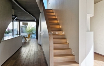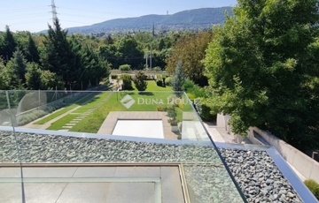 III. kerület, Aranyhegy csendes, zöld, mégis kiemelten keresett részén eladó egy minimál stílusú, modern, nappali + 4 hálós családi ház, nagyvonalú terekkel, medencével, óriási teraszokkal és igényesen parkosított, nagy méretű telekkel.