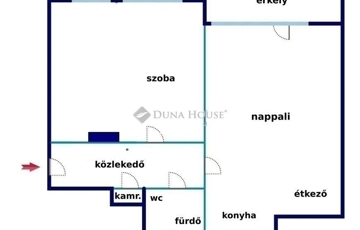 – külön helyiségek: előszoba, konyha, kamra, fürdő+WC, két külön szoba