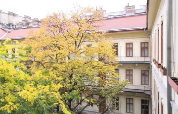 Az épület kapuján kilépve, a Liszt ferenc tér éttermekkel, parkkal övezett, belvárosi nyüzsgésébe érkezünk meg. A tér nagy része parkosított, díszburkolattal ellátott, számtalan étterem és kávézó idézi meg a Budapest belvárosára jellemző, egyedi hangulatot.