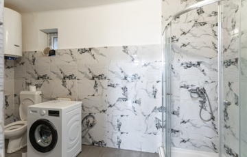 A nappaliban hűtő-fűtő klíma optimazizálja a hőmérsékletet, míg a két hatalmas hálószobát egy közös cserépkályhával lehet fűteni.