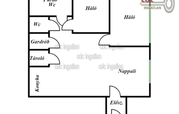 Az ingatlan helyiségei világosak és tágasak: nappali, két hálószoba, konyha, étkező, előszoba, gardrób, fürdőszoba, külön WC.