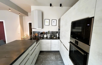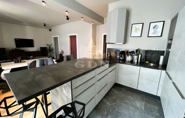 -Nappali: Beépített, modern, teljesen felszerelt konyhával. Tágas és világos, ideális családi összejövetelekhez.