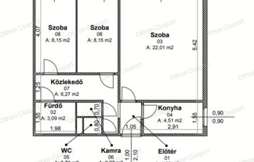 • 56 m² – 1+2 félszoba, jól szeparált terek