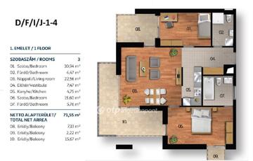 Lakások mérete: 49 nm-es, 2 szobás lakástól a 150 nm-es, 5 szobás és a tetőteraszos, exkluzív penthouseig.