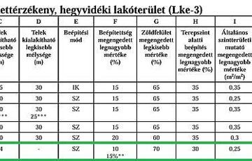 A telek besorolása Lke -3/D-6, 15% -os beépíthetőséggel és 0,25 - ös szintterületi mutatóval. 3 rendeltetési egység létesíthető; 6,5 m-es az engedett építménymagasság.