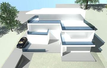 A telekhez készült látványterveken a felső, 3 lakásos ház tartozik a szóban forgó telekhez.