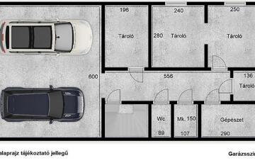 A telken ugyancsak kialakításra került egy közvetlen utcafrontról nyíló, különálló garázs (26nm).